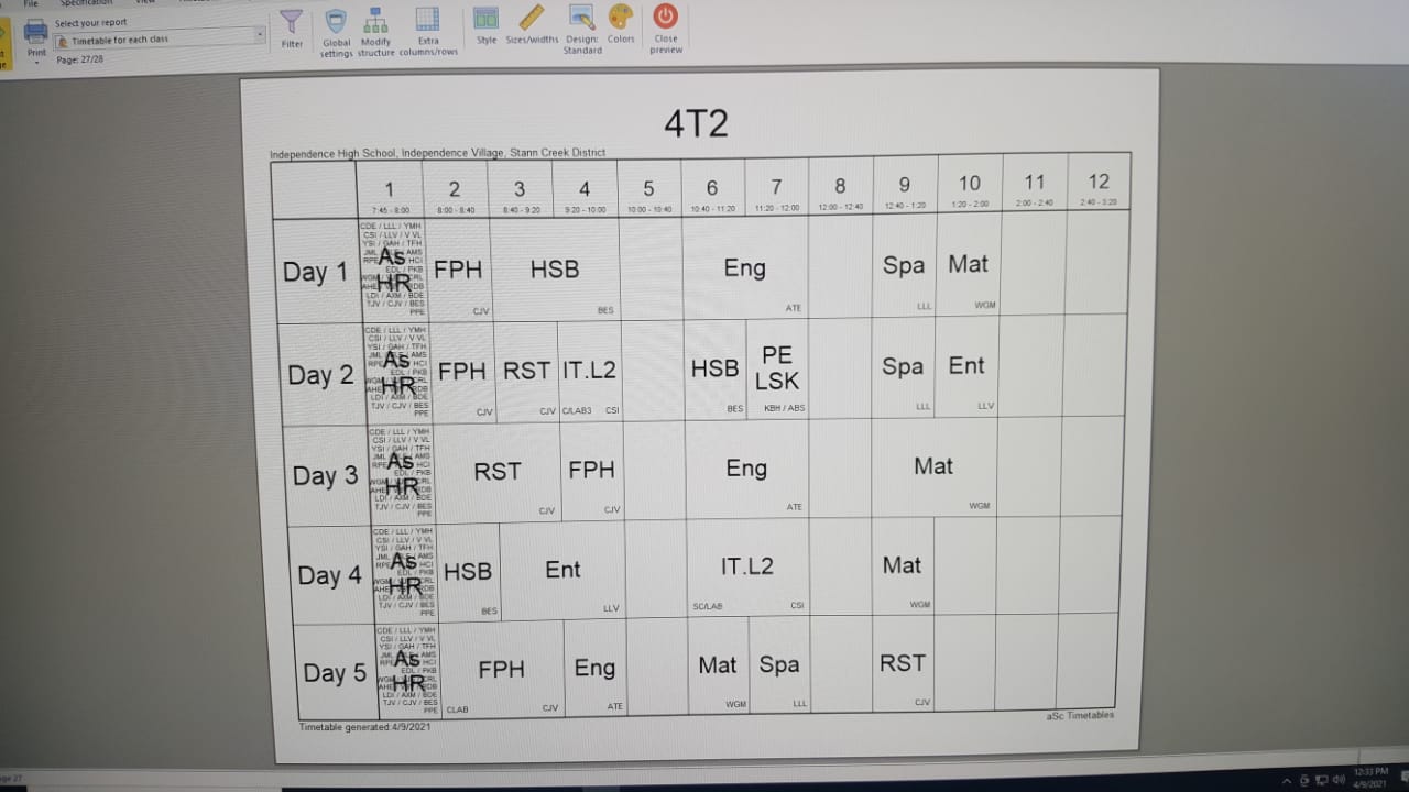 Classes at IHS